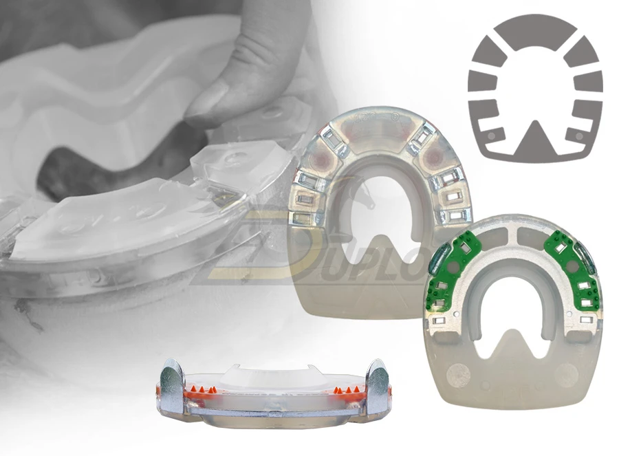 Der Duplo Arizona ist ein vielseitiges Hybrid-Hufeisen . Hybrid deshalb, weil er – wie unsere anderen Verbundhufeisen – einen stabilen Metallkern mit einem stossdämpfenden Kunststoffmantel kombiniert. Multifunktional, weil der Arizona mehr kann, als man auf den ersten Blick meint – mit mehreren Funktionen, die ihn in der Praxis oft unterschätzt erscheinen lassen.