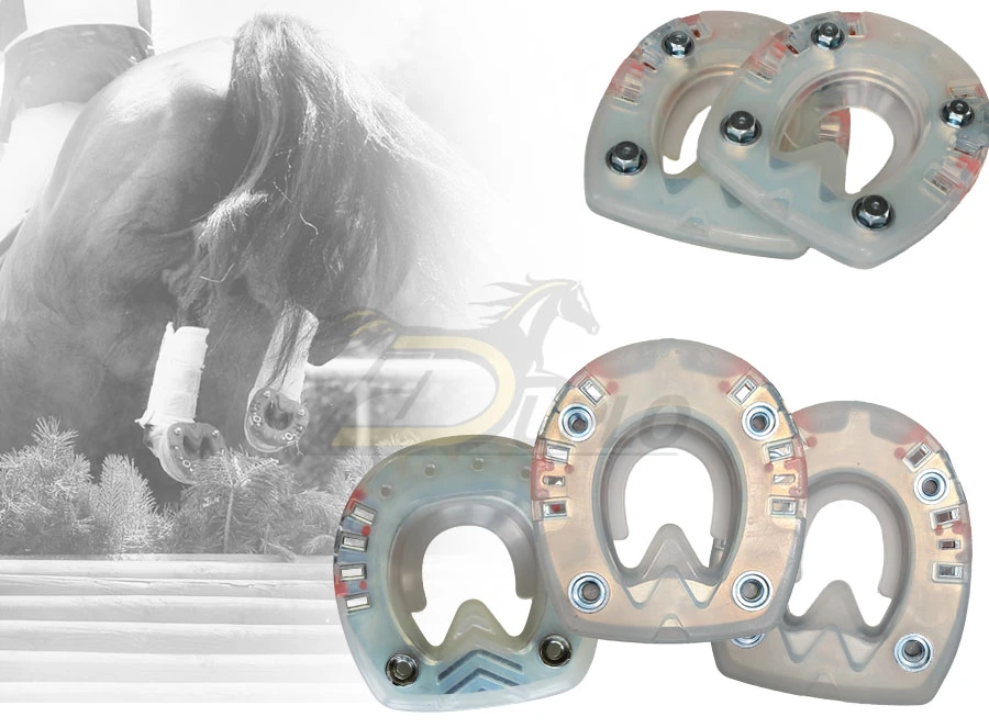 Das Springhufeisen kombiniert stossdämpfenden (durch die Ummantelung aus Urethan ) mit integrierten stabilen Stollenlöchern, die für den regelmässigen Stollenwechsel geegignet sind. Die Gewindeeinsätze sind gründlich im Metallkern des stabilen Querstegs fixiert; Sie können daher auch höhere Stollen verwenden, um das Pferd bestmöglich zu dabei zu unterstützen, dass es bei der Landung oder in engen Kurven ausrutscht.