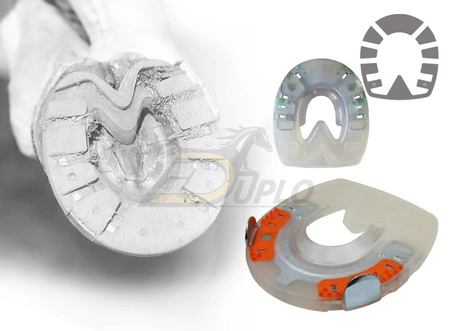 Sie wollen einen besonders rutschfesten alternativen Hufschutz aus Urethan ? Hier ist das ist der ideale Verbundbeschläge für Ihr Pferd! Unser profiliertes Modell mit seitlichen Kappen hat ein tieferes Profil; dadurch hat Ihr Pferd vor allem im Gelände mehr Grip als mit einem regulären Hufschutz.