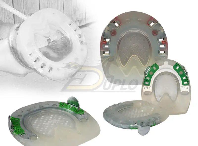 | Caractéristiques | Pinçons latéraux — pour éviter le glissement sur le sabot Semelle fermée – protection de la sole du sabot, vous pouvez appliquer du rembourrage (malléable et liquide) Pour plus d’informations sur le fer en plastique, veuillez consulter la description détaillée du produit. |